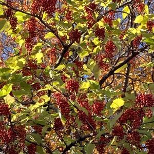 赤い実がたくさん房成りしていて目を惹きました。 木に植物名が掛けてあり、助かります。 今日は植物いっぱいの柏の葉公園で、リレーマラソン大会が開催されました。 私は応援専門で、木々の秋の姿に惚れ惚れしながら、約500組参加した低学年の親子マラソンを応援し、家族を必死に探しました😁 マスクしてつらそうですが、開催できるまでになった事を、油断せず嬉しく思います😌