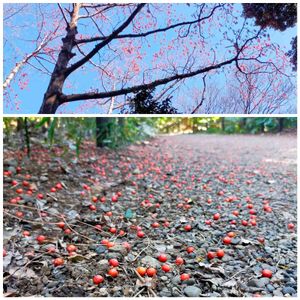 去年の秋冬から、頭上高く見上げれば視界のどこかにイイギリの赤い実🔴 鳥たちがたくさん群がっていて、あちらこちらに 「カツーン、カツーン🔴🔴🔴」と実が落ちる音が響いていました🤗 地面が赤く染まり綺麗です✨ 🏷真っ赤な火曜日