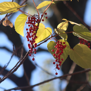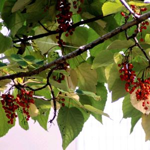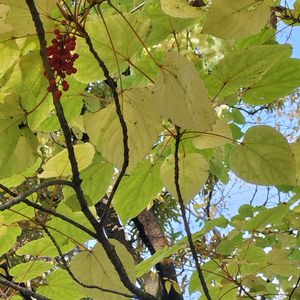 《 イイギリの赤い実 》 赤塚植物園の入口を入ると、小さなスイレン池の先に背の高いイイギリ(飯桐)が赤い実をたくさんつけていました 二羽の野鳥が美味しそうにその実を啄んでいる姿は、「やがて冬が来ると食べるものが少なくなるので、今のうちに食べられるだけ腹に入れておこう」というようにさえ感じられました☺️ イイギリ(飯桐)は、 ヤナギ科イイギリ属の落葉高木で山地で生えています 名前の由来は、 むかし、この葉が飯を包むのに使われていたこと、また、葉が桐の葉に似ていることからイイギリ(飯桐)となったようです。 (wikipedia)