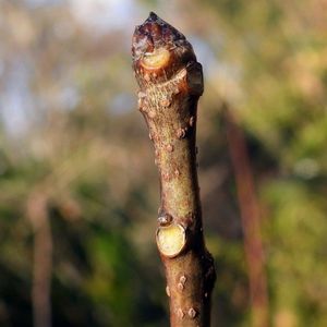 🌱 冬芽と葉痕 イイギリの冬芽です。 頂芽は半円球で大きく、葉痕も円球から半円球で大きいです。 イイギリは昔ご飯を包むのに用いられたので、飯桐と名前が付けられました。 桐に葉が似ているので桐の名前が付いていますがヤナギ科です。 1属1種のイイギリ属です。