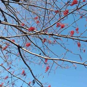 イイギリ(別名 南天桐) 完成❣️ 11/26投稿のイイギリから一カ月程で葉っぱも散り落ちて、赤い房だけのイイギリの木が完成❣️鳥達の楽園です。今年は大きな房で見ごたえあります🍇🍇🍇