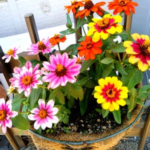 まだまだ元気 百日草 あざやかなピンク~ オレンジ🍊 がんばる💪ね