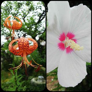 鬼百合 底紅 水分も無さそうなカラカラの庭にスックリと鬼百合があちこちで咲いてます。 もっと優しい色なら抜かないのに…😆 増えないように抜いても抜いても出てきます。 今は花が少ないからいいか❗️😒 底紅(そこべに)ムクゲは大きな花を付けて、塀から伸び上がり咲いてます🎵 ハイビスカスも、オクラも、芙蓉も、立葵も…皆似ている、暑さに強いわネ😂🌺🌺🌺
