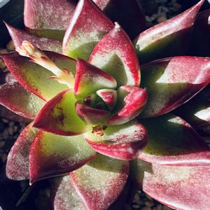 花芽が見えてます😊 この子はここ何年か花が咲いてくれてます。 黒爪ザラゴーサ交配で購入した多肉さんです。 カッコ良いです😎