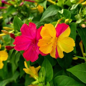 『咲き分けオシロイバナ 💛💗🍃🤍💗🍃』 昨日の咲き分けオシロイバナ 黄色バージョン💛💗🍃 咲き始めました👏✨ 沢山の花数増えましたよ❣️
