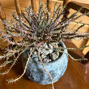 ■ユーフォルビア:フラナガニー ■和名:孔雀丸 我が家に来た時のタコ足の半分は枯らしました。 辛目に締め上げているので、今のところ締まってるかな🤔 中央から新芽有り!