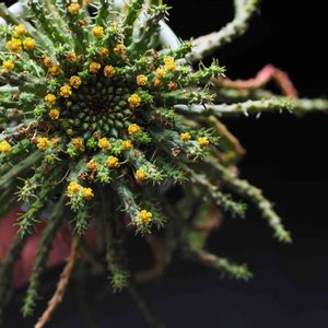 姿から想像できない小さくて可愛い花゚・*:.。❁ 年に何回か咲くので、楽しみもあるね(๑⃙⃘ˊ꒳ˋ๑⃙⃘) #ユーフォルビア フラナガニー