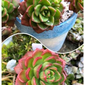 28日 つぶつぶの日参加します😊 ↖️↗️ふたつともベッラディンベルノさんだけどこの色の違い〜(*゚ω゚*)ん? ↘️地植えのコーラルカーペットさん 美味しそう(*´艸`)ププ ↙️地植えの名無しのつぶつぶさんもほんのり色づいてる❤︎゛