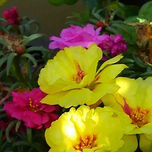 おはようございます🎵 強い日ざしの中で 元気にさくお花✨ 奥の方に見える 風船カズラも🎈 そろそろ終盤を迎え ますね・・・(´д`*) 松葉ボタンさん 🌼花言葉 【無邪気】( v^-゜)♪
