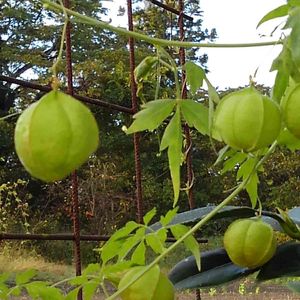 おはようございます🎵 沢山絡みついてましたが 果実が茶色くなって🎈 来たので片付けました・・・ 黒丸で白いハートの 形の種です🎈 とっても愛嬌の ある可愛い種です😍🎵 たくさん取れました❤️ 風船カズラさん~ 🍀花言葉 【一緒に飛びたい】💕