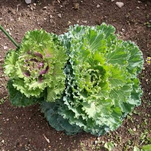 昨日アップした葉ボタンですが、実は大小仲良く並んで育っています😊✨ 現在、このまま地植えで愛でるか、大きな鉢に移植するか考え中😅