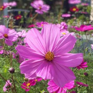 ✨コスモス✨《ベルサイユシリーズ》 ベルサイユとは😳またゴージャス✨ なるほど花径8cmと大きめෆ̈♪♬ 見応えあります𖤣𖥧⚘𖡼.𖤣𖥧𖡼.𖤣𖥧⚘ ❀︎ベルサイユスペシャル❀︎ 花色も濃桃色ෆ̈真ん中へ濃くグラデーション✨ 魅惑的なお花…ෆ̈ෆ̈ෆ̈( ⸝⸝•。•⸝⸝ ) ※ネット検索によると… 高性ビピンナタス系 サカタのタネが改良・育成した系統で 茎が太くしっかりとし大輪の花を咲かせ 切り花用に適した品種です。 濃桃色、花芯が濃い品種です。 長日期専用の品種です。 とありました〜𖤣𖥧⚘𖡼.𖤣𖥧𖡼.𖤣𖥧⚘ 参考まで✿︎ 《ベルサイユシリーズ》4種 ❀︎ベルサイユスペシャル ❀︎ベルサイユホワイト ❀︎ベルサイユレッド ❀︎ベルサイユピンク