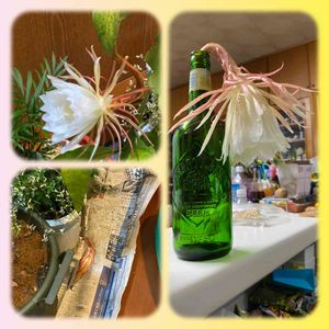 月下美人の開花が始まりました。 玄関にいい香りが漂っています😃 地植えの方は台風に煽られてたので摘んできました。 1蕾はどうやら明日のようですね。