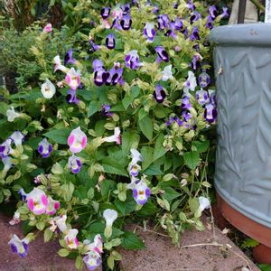 サフィニア パープル/イエロー 冬越しできた2株、今年は枝垂させたくてハンギングにしています♪ この後この子達も梅雨入り前の切り戻しを行いたいと思います✂️