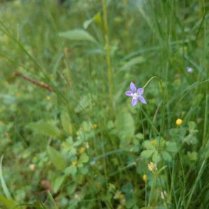 よく似た名前三兄弟の中で、一番早く咲くヒナギキョウ。 とても華奢で儚い。 意識して探さないと気づかないくらい存在感が無い。 ウチの庭には、キキョウソウとヒナキキョウソウは生えているけど、このヒナギキョウだけは無い