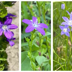 よく似た三兄弟と言われる (左から) ヒナギキョウ ヒナキキョウソウ キキョウソウ
