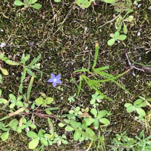 【ヒナギキョウ】 ニワゼキショウと紛れて咲いてたりしますので見逃してしまう事も多いです。右はその果実です😄 キキョウソウ、ヒナキキョウソウ、ヒナギキョウと3種類、紛らわしいですがその中で一番小さく愛らしい花がこのヒナギキョウですね😊 (素朴な草花達)