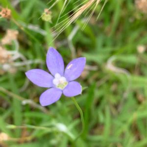 近所の病院の芝生の中に小さなお花が咲いていました💜 1cmくらいの小さなお花です ヒナギキョウかな