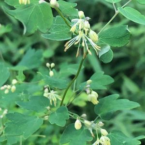 アキカラマツ(秋唐松) キンポウゲ科カラマツソウ属の 多年草 分布 本州~九州地方 林縁のササの中に咲いていました。 花弁はなく、花弁状の萼も、開花後、早くに落ちて、雄しべの葯が目立っていました。 花は、8㎜くらいで、小さいですが、花数は多く、少し、華やかに見えます😆