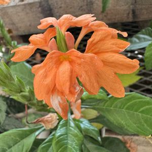 クロサンドラ かがり火 オレンジと鮮やかな緑の葉が素敵な子🧡💚 このツヤツヤのグリーン………たまらん💚💚😘💋🧡🧡