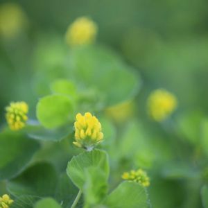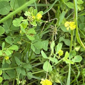 コメツブウマゴヤシ (米粒馬肥やし) マメ科 ウマゴヤシ属 5~7月 高さ30~60cm 帰化種 這性、または斜上して高さ30~60cmとなる 葉は3小葉 小葉は長さ1.5cm前後の倒卵形で、上部に細かい鋸歯がある (コメツブツメクサは長さ0.5~1.0cm) 花序は黄色の蝶形花が20~30個集まって付く (コメツブツメクサは5~20個) 果実は豆果 豆果は先の方だけ半回転し、ひとつの果実に1個の種子が入る