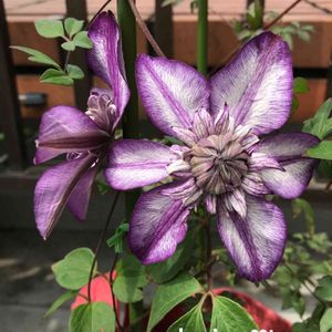 今日の花 クレマチス ✨ダンシング・キング✨ カルセドニーと似てるけど、少し小ぶり、 グリーンと紫が混じった花色は なんとも言えません😆❣️ 豪華に咲きます💕