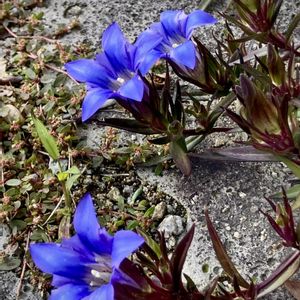 リンドウ(竜胆) リンドウ科 原産地 日本 古くから秋を代表する山野草の花として知られてきました。🌱🌱🍀 秋の野山に凛として咲くリンドウ、時には足元に這うように咲いている…🌸 家の庭のリンドウは秋の陽ざしをいっぱに受けて気持ち良さそうに寝転んでいました。😅 そうですよね。 雨☔️、曇りは萎んでますもの。😌