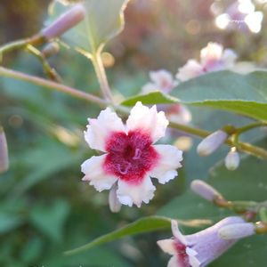 淡い青紫色の花が枝先で密にならない程度に集まってゆらゆらと風に揺れて います。 ミツバハマゴウはセイヨウニンジンボクに少し似ているので、ニンジンボクプルプレアの名前で流通していることも…。 葉っぱは表が緑、裏側が薄紫でカラーリーフとしても楽しめます。 日本南部・東南アジア原産。 クマツヅラ科ハマゴウ属の落葉低木。
