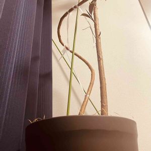 レナータさん、さすがシェフレラ強いです✨ 樹形も葉っぱも可愛いなー 低いうちのけっこうな曲がり、これから伸びて行くのはどう仕立てたらいいのか考えます🤔 とりあえず今年伸びた枝はこの曲がりを延長させるため縛っておこう