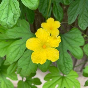 🐾🐩お散歩コースで見るお花(*゚▽゚)ノ どなたかのお宅の塀にツルになっていっぱい咲いてます。 500円玉よりちょっと大き目サイズです。