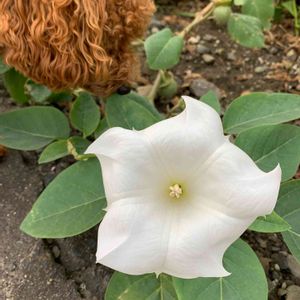この白い花… 何だかわかりますでしょうか? アサガオを大~きくした感じです。 野菜なのかな?^^; ps 毒のある花でチョウセンアサガオだそうです。 コワイ!気を付けないと~! ありがとうございました。