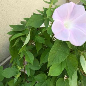 朝顔の一番花が咲きましたー!が、気付いた時にはこの状態 (>_<)台風の風ですね。。 綺麗な時に見られなくてちょっとしょんぼり。でも、強風の中で頑張って咲いてくれたのね。淡いピンク、大好きです。 こちらはいつもupしている家の裏側ではなく、玄関横の花壇です。両方でこれからたくさん咲かせてね(^。^)