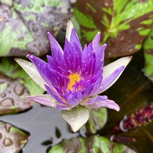 熱帯睡蓮のパープルレインが今期初開花〜( ^ω^ ) 花芽がどんどん上がってるので今年は期待出来るかも(*^o^*) 広い水面と水深があった方が良い品種なんですかね?