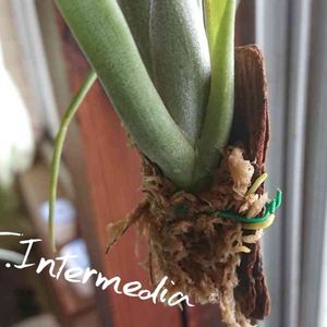 インターメディア。の、根っこ。 しっかりバークを掴もうとしてますね😊 水苔の中にも一本確認しています。 ただ、根っこは伸びるのに肝心な上があんまり成長していないっぽい🤨