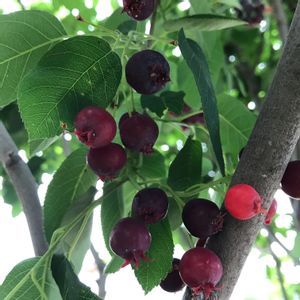 ジューンベリー 木が大きくなり、一杯実がなっています 採るの遅すぎますか? 小梅、梅、ジューンベリー、らっきょうなど、仕事の合間に採ったり漬けたりで、目が回りそうです🌀