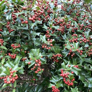 クリスマスホーリー🔴🎄✨ こんなにたくさんの実がついたのは植えて以来初めてなんです。 面白い事に亡き主人が夢を見ていて、誰か?天なのか?神様なのか?忘れましたが、お告げを聞き入れ「赤い実がなるトゲのある葉の植物を庭の東南側に植えなさい」と言われて植えました。 何がどうなるのかも私は知る由なしですが😆