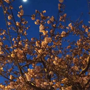 昨晩の桜とおぼろ月です。そして、今日はしとしと雨。桜は河津桜みたい、六分咲き位です🌸。