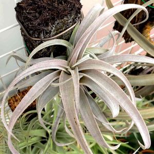 チランジア チアペンシス!(左下) 自力じゃないけど、科学の力を借りて紫色に染めました。これって珍しくないですかー。普通?とほほ。。 ちなみに右上も紫?ワインレッド?色のカピタータ ドミンゲンシスです。以前出したけど😁