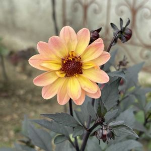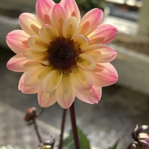 ❁. 。銅葉プチダリア’フレディ’。.❁ 絞り模様が入ったお洒落なダリア𓍯 銅葉と黒っぽい茎で 大人っぽい印象を与えてくれます🌿 絞りが入ることで優しく 落ち着いた雰囲気になりますよね𓂃◌𓈒𓐍 𓈒 赤やピンク、黄が混ざった ニュアンスカラーで 色幅が楽しめます🌸 コンパクトな見た目で 従来の品種とは違い お淑やかで可愛らしいダリア ✽.。 宿根草なので 毎年楽しめるのもポイント✨ *育て方* 日当たりのいい場所を好みます。 水やりは土の表面が乾いたらあげてください。 夏は風通しの良い場所で管理してください。