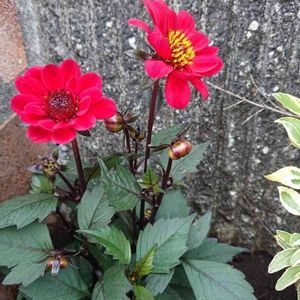 ブロンズの茎がかっこいい! 真っ赤なプチダリア。