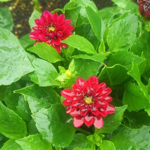 こんにちは✨ 梅雨寒で☂️が降り続く中プチダリアの赤が咲いてくれました😊 花弁に☂️が貯まって艶っぽくとても魅力的です😌💓 今日は☔️で作業が出来なくなり早上がりで帰ってきました😃