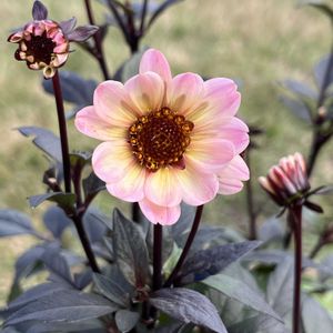 プチダリア・ハミングブロンズ(エタニティ) 銅葉色の葉っぱが魅力的で 可愛いお花のプチダリアさんに出会いお迎えしました𓂃 ◌𓈒𓋪✿·͜·ᰔ 学 名:Dahlia hybrida 科名:キク科 属名:ダリア属 原産地:メキシコ、グアテマラ 開花期:春~秋 草 丈:30~50cm