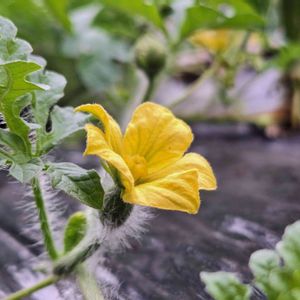 小玉スイカの雌花が咲きました♥️ やっとですー✌️ 同じ頃から育ててる皆さん、もうスイカが実ってて😓 もう今年は実らないのかと思いました、、