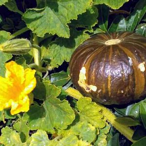 畑に捨てたカボチャの種が、いつのまにか花を咲かせ、実をつけてました。これから秋冬なのに、どうしましょう😱💦