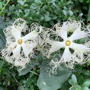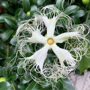 今日のお花🤍カラスウリ🤍❓ モシャモシャが凄い❣️ 昨年7月pic 昼間咲いていたので「キカラスウリ」のようです ヒゲのようなものが先端からだけ出てるが、カラスウリは全体から出ているそうです