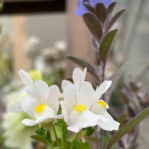 アメリカンブルーとネメシア🌼💙 どんよりとした空の下 アメリカンブルーの葉っぱが秋色に 白花のネメシアが引き立てている。 夏の間、お疲れ様💕 もう少しそばにいてね😉 って言ってるみたい。