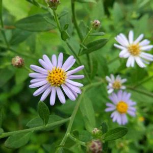 おはようございます☁ ⭐庭に咲くヨメナ⭐ 20年前庭作りを始めた時に、何でもいいから植えたくて近くの道端からお持ち帰りして植えました😂