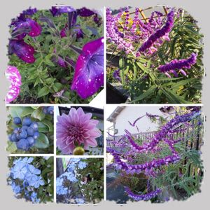 青い花マニア🏷 青い秋の花2020🏷つけてま〜す… ペチュニア…ナイトスカイ↖️ アメジストセージ↗️↘️ 左下…↙️の中 マルバシャリンバイの実↖️ ダリア↗️ ルリマツリ↙️↘️ 青い花探し出来ました…🤗🤭💯💠💙🎶💠💙🎶❣️🙆🏻♀️ チーム・ブルー…メイトの… ㊗️*なおみ*さん… 500picのお祝いに… 🎁💐贈りたいと思います……🌸💮 おめでとう御座います…💐🌹…