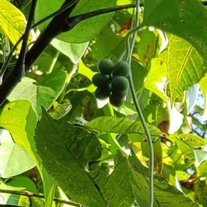 里山にて、ツタが木に絡まっていて実がついていて花も咲いてました。