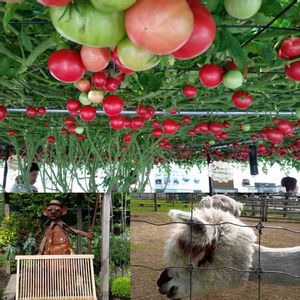 北海道恵庭市にある 『えこりん村』 のトマトの森の🍅 一株から13000個以上のトマトを ならせて、世界ギネスに登録されています😃 一株なのわかりますか⁉ ここでは庭園、動物園 珍しいお花の苗や ガーデングッズも沢山販売されています😃 クイズ 下の動物何かわかりますか⁉ 当たった方には グルルル 景品はありません😂⤵⤵✊😵